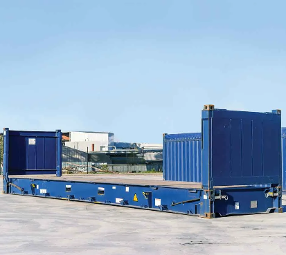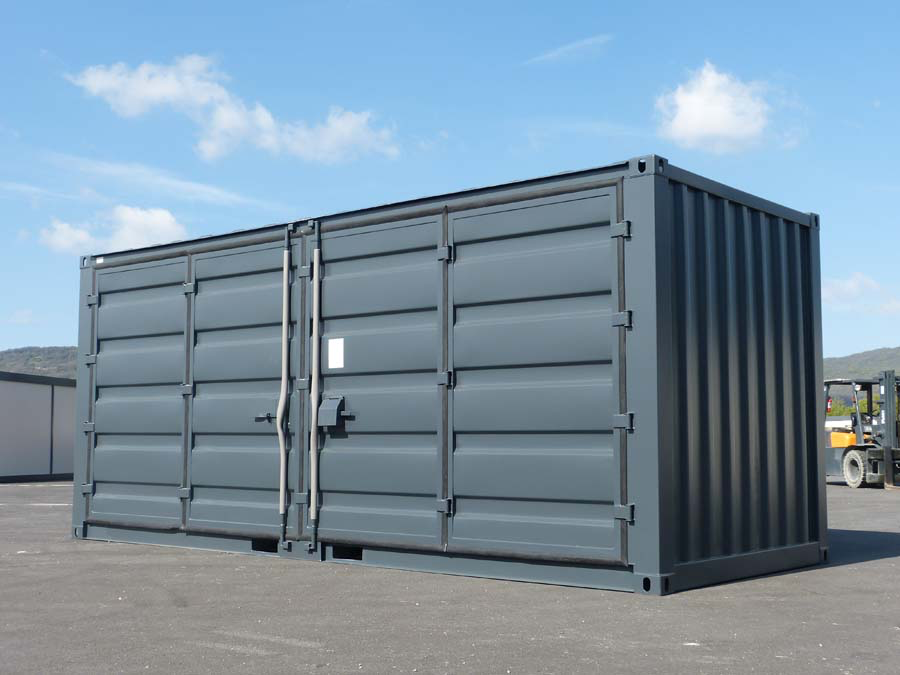 Ce conteneur de stockage ouvert de 6 mètres de long possède quatre portes s’ouvrant sur toute sa longueur, offrant un accès latéral complet.