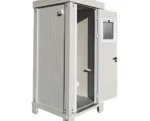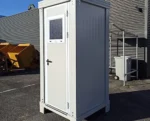 Fabriqué en acier galvanisé peint (RAL 9002), il comprend une toilette en céramique avec chasse d’eau en PVC, un lavabo avec robinet et miroir, le tout intégré dans une cabine solide et bien isolée. Facile à transporter grâce à ses 4 pieds de 16 cm et ses anneaux de levage, ce module garantit confort et praticité.